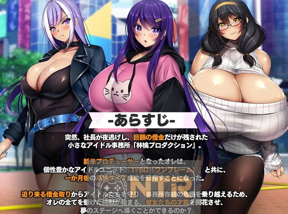 老总一夜之间跑路,小事务所“林檎プロダクション”欠下一屁股债。新手制作人你上位,带着那群身材火辣的爆乳偶像小队『1/60(ワンフレーム)』,瞄准一个月后的演唱会大展拳脚。