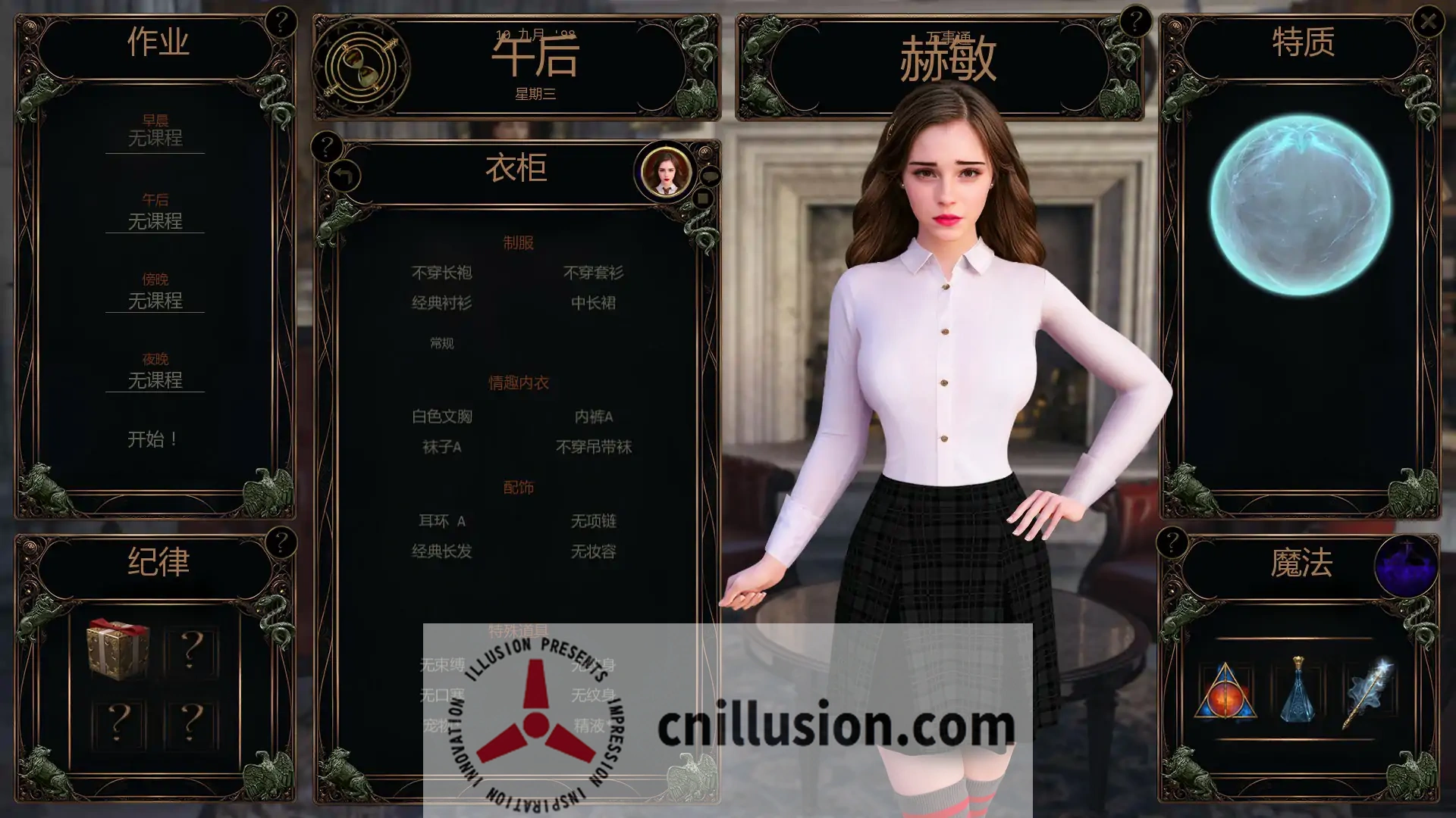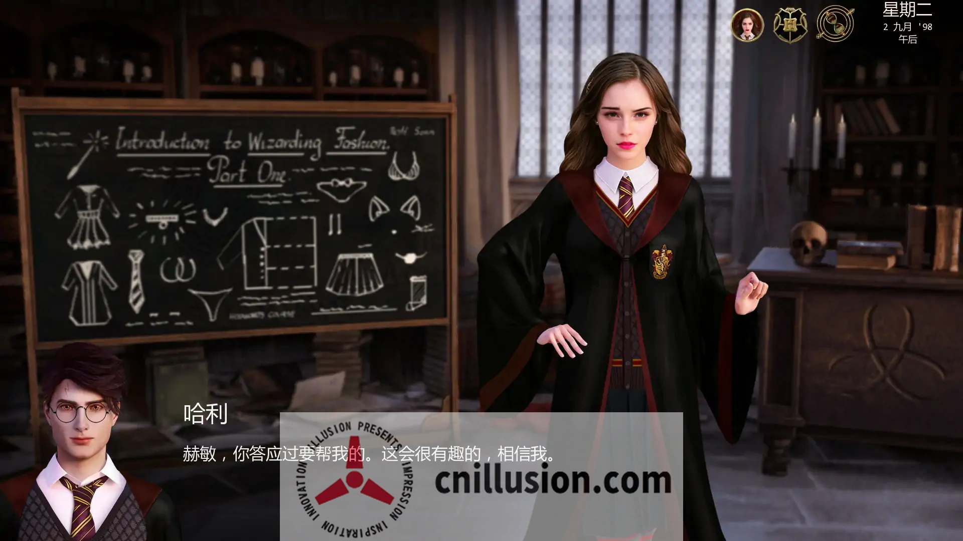 策略SLG, 开放沙盒, 3D CG渲染, 动画场景, 哈利波特粉丝作, 赫敏互动, 服装调教, 学校漫游, AI翻译版, PC+安卓