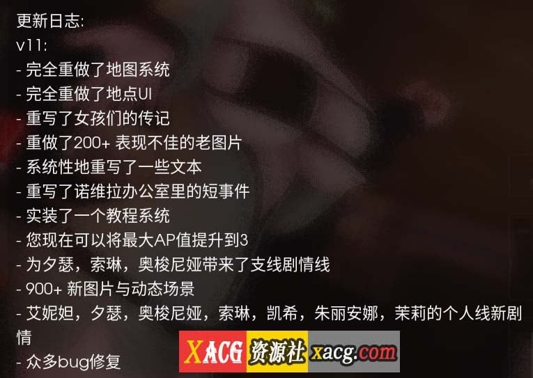 这次亮点:全新城市地图背景UI小升级事件泡泡重设计自由漫游界面跟v10天差地别位置布局也调了调整体优化老存档v11前那些坏的不会再跳出来安卓首次开保存菜单不卡顿了。